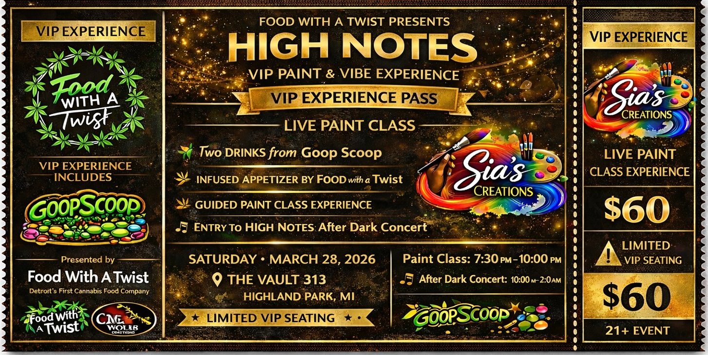 During the experience, guests will also receive pre-rolls and an infused appetizer prepared by Food With A Twist, Detroit’s first cannabis food company.